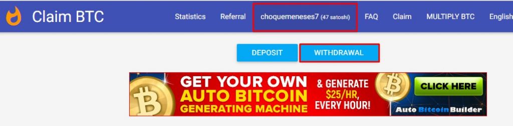 Cuando por lo menos hayamos juntado 20000 satoshis, lo único que se tiene que hacer para solicitar un cobro es dirigirnos a nuestro perfil en el menú superior y seleccionar la opcion «Withdraw», luego de esto el pago nos sera enviado automáticamente a nuestra direccion de bitcoin,